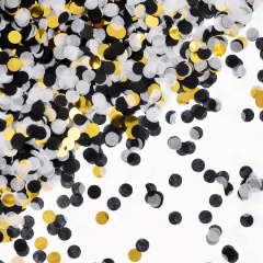 Конфетти купаж, Круги, фольга и тишью, ЧБ в золоте, Металлик, 1 см, 50 г.