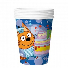 Стаканы (250 мл) Три Кота, С Днем Рождения! Синий, 6 шт.